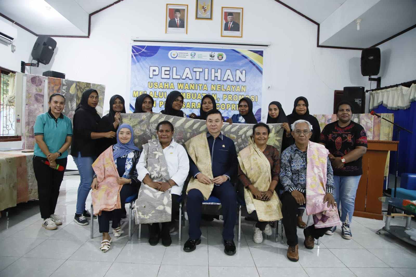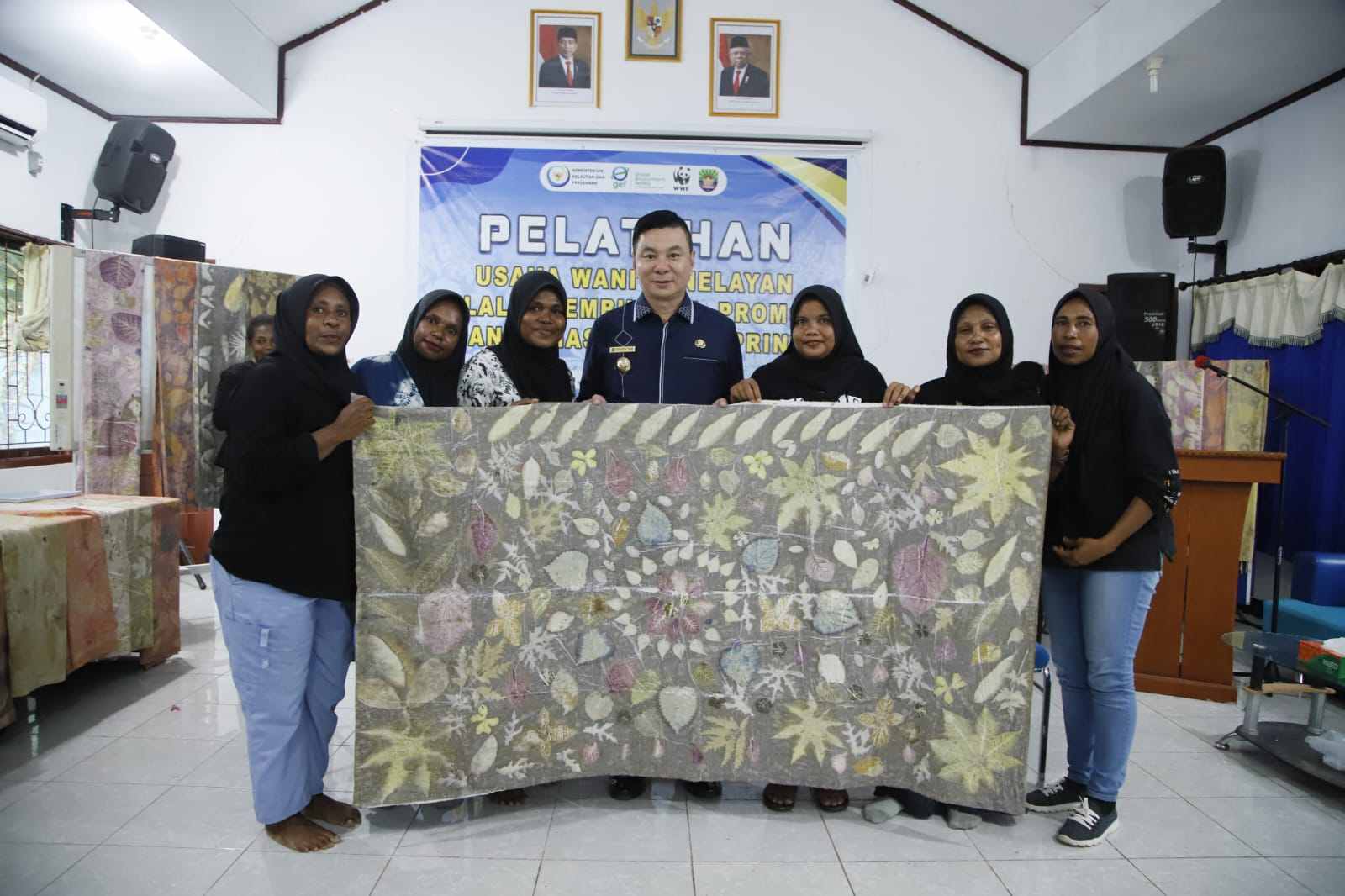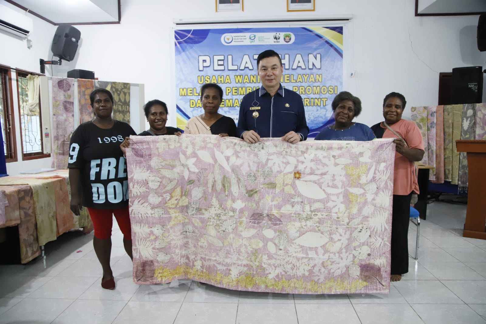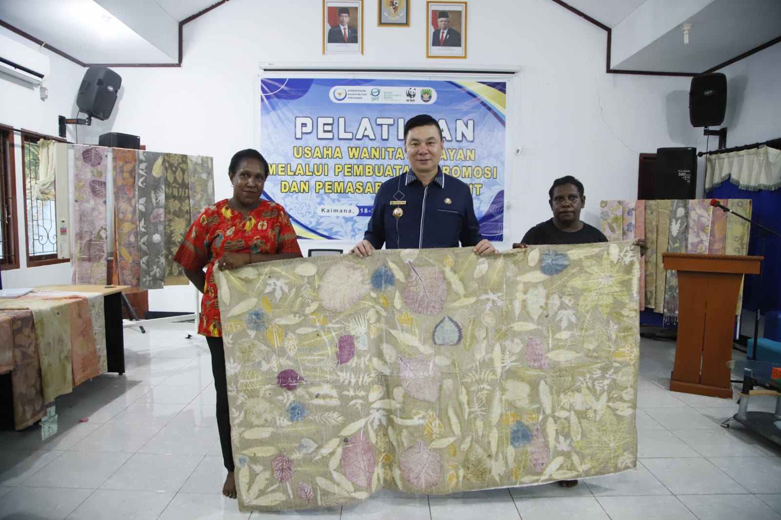 Bupati Kaimana, Freddy Thie, memberikan sambutan dalam acara penutupan “Pelatihan Usaha Wanita Nelayan Melalui Pembuatan, Promosi, dan Pemasaran Ecoprint” yang diselenggarakan oleh Dinas Perikanan Kabupaten Kaimana (20/09). Kegiatan pelatihan ini bertujuan untuk memberdayakan para wanita nelayan melalui inovasi produk berbasis ecoprint sebagai salah satu upaya peningkatan ekonomi masyarakat pesisir.