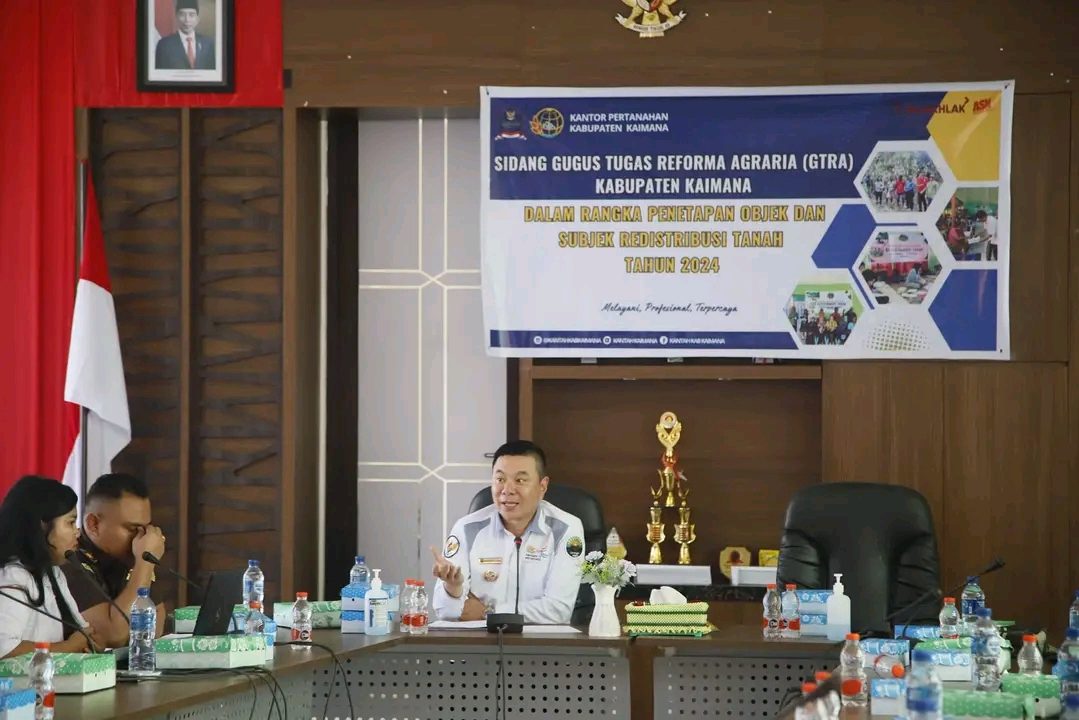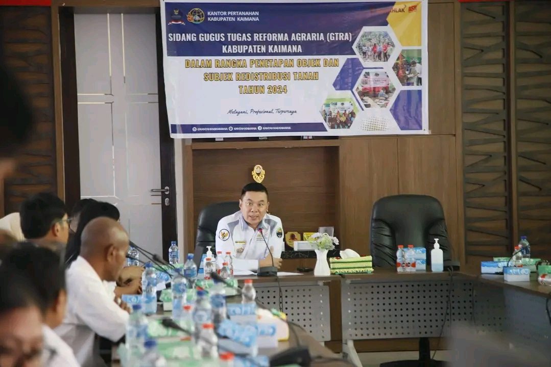 Dalam rangka penetapan objek dan subjek redistribusi tanah tahun 2024 sebagai bagian dari upaya pemerintah untuk mempercepat pelaksanaan reforma agraria di Kabupaten Kaimana. Pada kesempatan tersebut, Bupati Kaimana, Freddy Thie, menghadiri secara langsung Sidang Gugus Tugas Reforma Agraria (GTRA) yang dilaksanakan di ruang rapat Kantor Bupati Kaimana pada hari Senin (18/09).