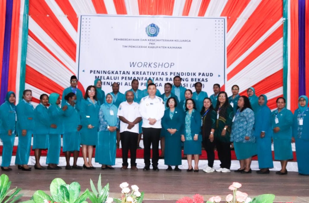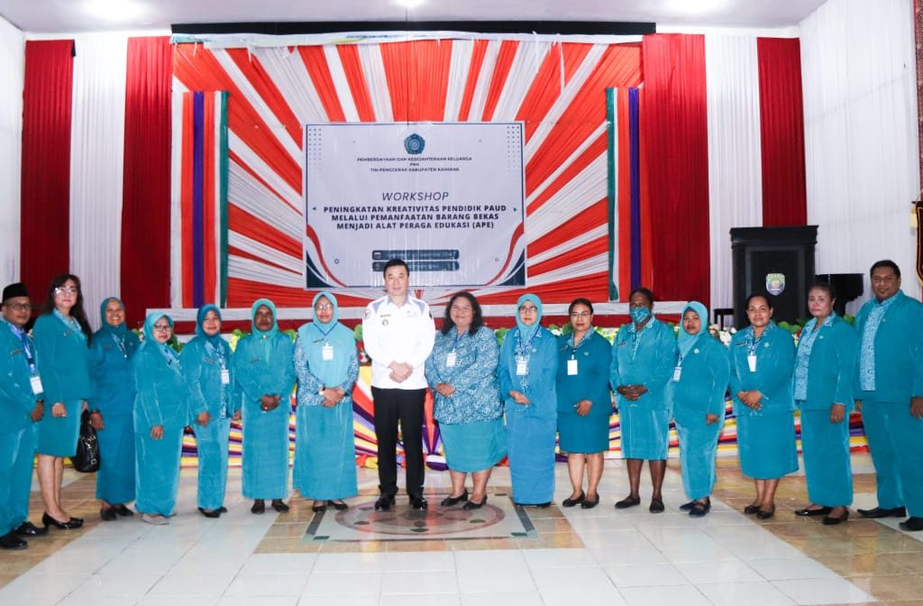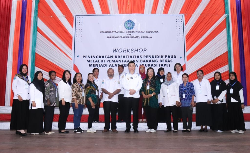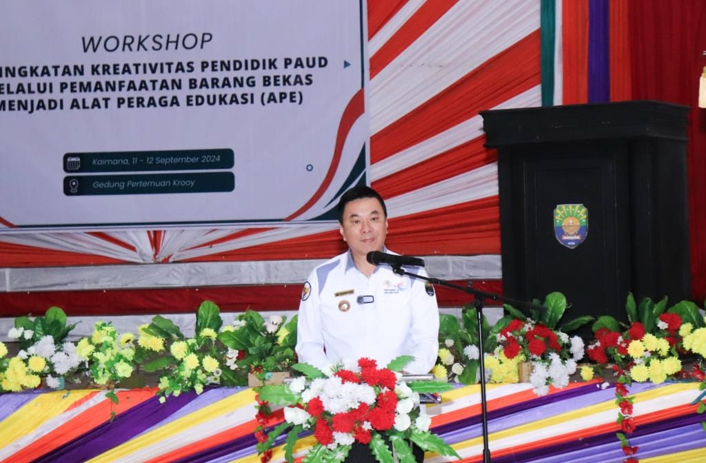 Bupati Freddy Thie menghadiri workshop peningkatan kreativitas pendidik Pendidikan Anak Usia Dini (PAUD) yang diselenggarakan oleh Pemberdayaan Kesejahteraan Keluarga (PKK) Kab. Kaimana di Gedung Pertemuan Krooy pada Rabu (11/09). Workshop ini bertujuan untuk meningkatkan kemampuan para pendidik PAUD dalam memanfaatkan barang bekas sebagai bahan dasar untuk membuat Alat Peraga Edukasi (APE).