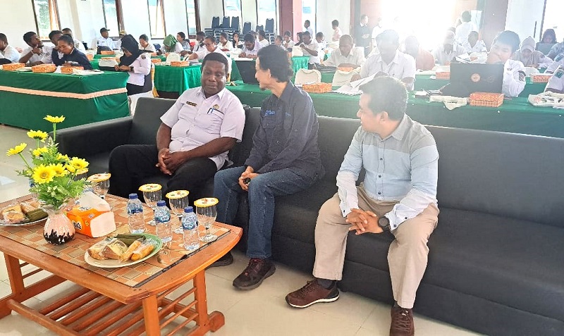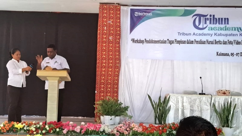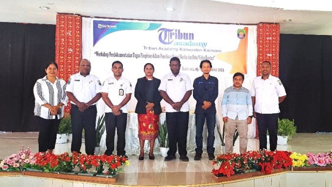 Staf Ahli Bupati Usman Fenetiruma, Bersama Narasumber Tribun Academy Dalam Acara Workshop Pendokumentasian Tugas Pimpinan dalam penulisan narasi berita dan foto yang dilaksanakan di Aula Rehobot Kaimana